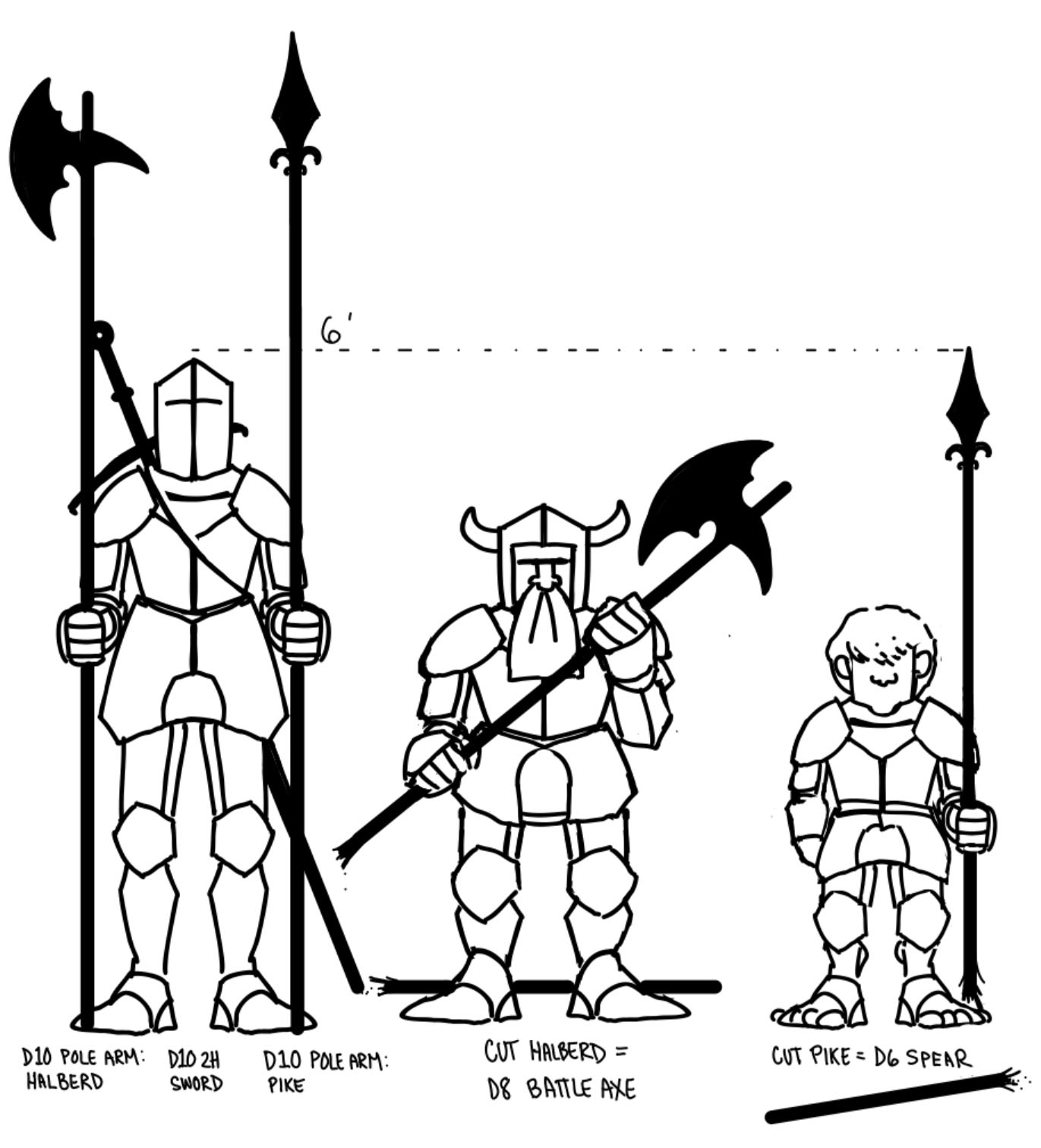- A pole arm is a normal d6 or d8 weapon at the end of a long stick. They do d10 damage because of that stick. Cutting the stick turns it back into a normal weapon. Stop letting Dwarves and Halflings deal damage like Fighters.