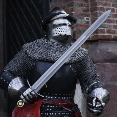 First, let’s consider the anatomy of a one-handed sword. It’s about 3′ long and has a hilt large enough to grasp with one hand.